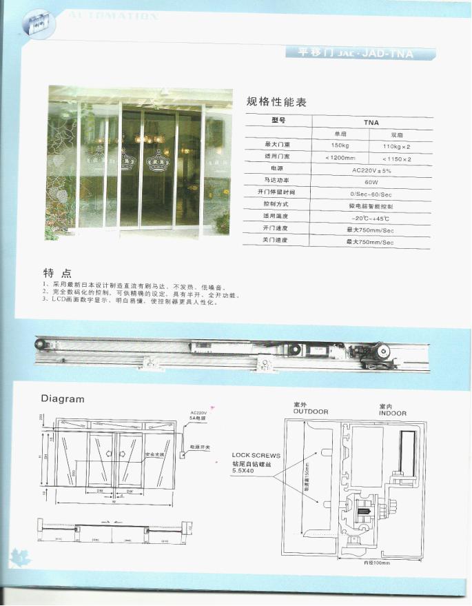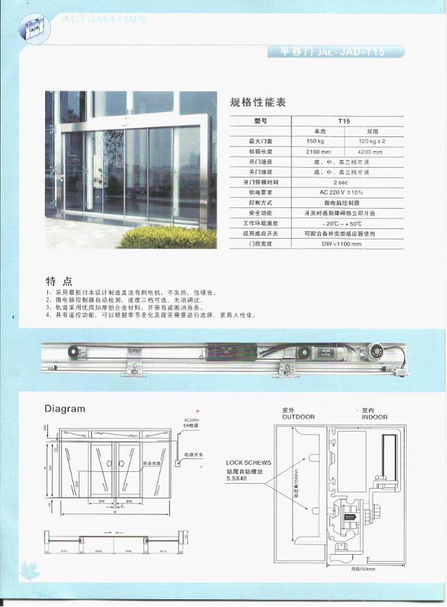 2、自動半開功能:進(jìn)出自由,不受限制,門開一半;可節(jié)約能源,適用于少人出入時使用;